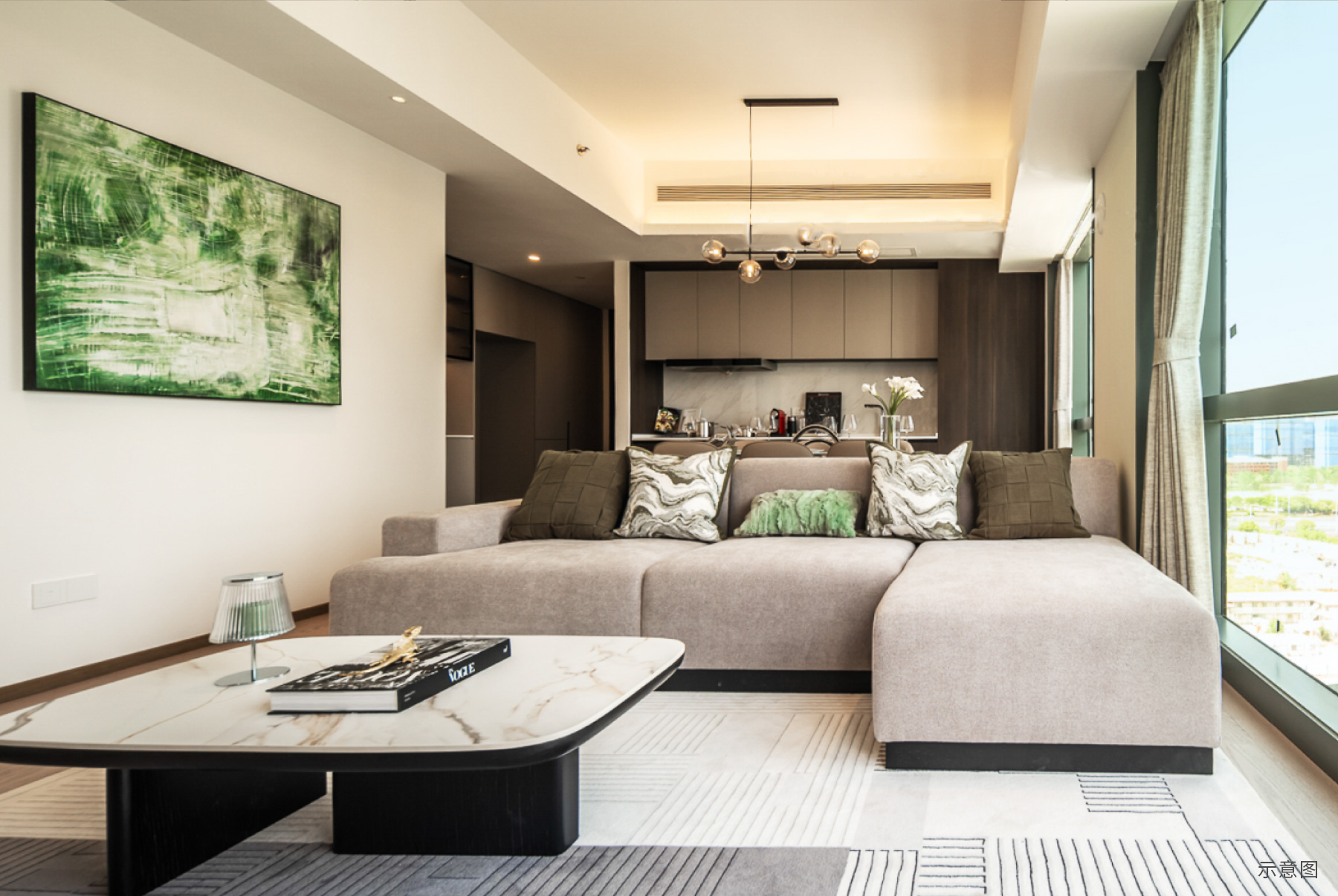 在产品打造上,臻逸跳出了传统酒店与普通住宅的二元框架,为上海高端公寓市场打造了 “酒店级精致 + 居家感温暖” 的全新样本。项目总计打造 136 套精装房源,户型覆盖 84-204㎡的一至三居室,除首层外均为 LOFT 复式结构,18 米挑高的中庭设计最大化引入自然采光,让空间通透而富有呼吸感。室内设计以低饱和度的简约风格为基底,融合海派摩登的设计细节,搭配环保建材与绿植点缀,在营造高级质感的同时,兼顾了长租客群对舒适感与归属感的核心需求。全屋配备国际一线品牌家电、全屋地暖与新风系统,同时针对长居需求打造了充足的收纳空间,让每一位住户都能在繁华都市中,拥有一个兼具品质与烟火气的 “第二故乡”。